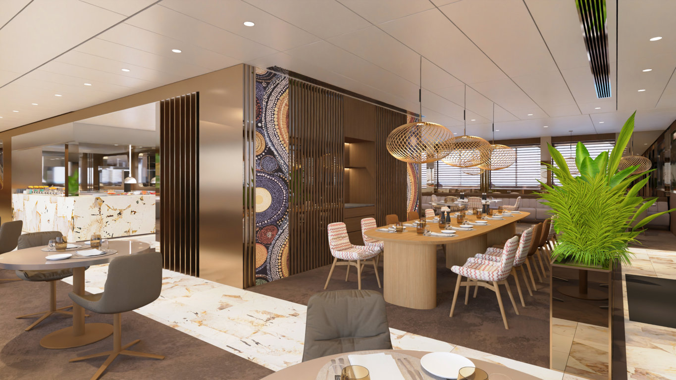 The onboard culinary experience is another highlight: the main restaurant, La Cucina, features an open kitchen, creating direct interaction between chefs and guests, making every meal a unique and engaging experience. Additionally, the new Night Market Grill offers an exclusive, private dining experience for up to eight guests, with dishes prepared à la minute in an intimate setting, perfect for special evenings or private celebrations.