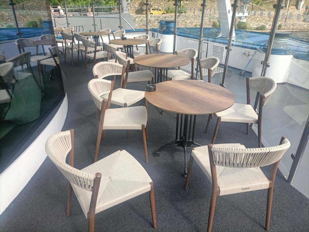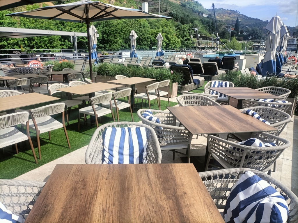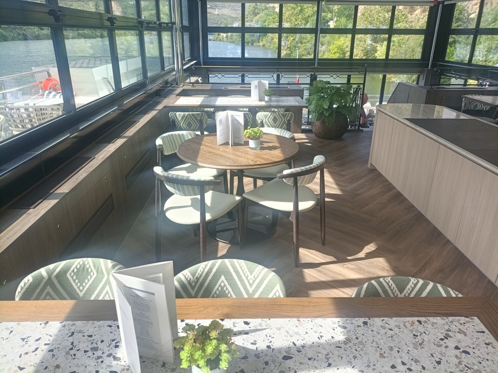 The beating heart of the ship is the onboard bar, the perfect place to relax after a day of excursions or to share a drink with fellow travelers. The informal yet refined atmosphere makes every moment special, whether it’s a morning coffee or an evening cocktail. Next, we explore the warm and elegant main restaurant and the Rio Restaurant. For those who wish to stay active even on vacation, the ship features a modern, fully equipped gym. Finally, the Sun Deck represents the ultimate expression of relaxation, offering spacious outdoor areas.