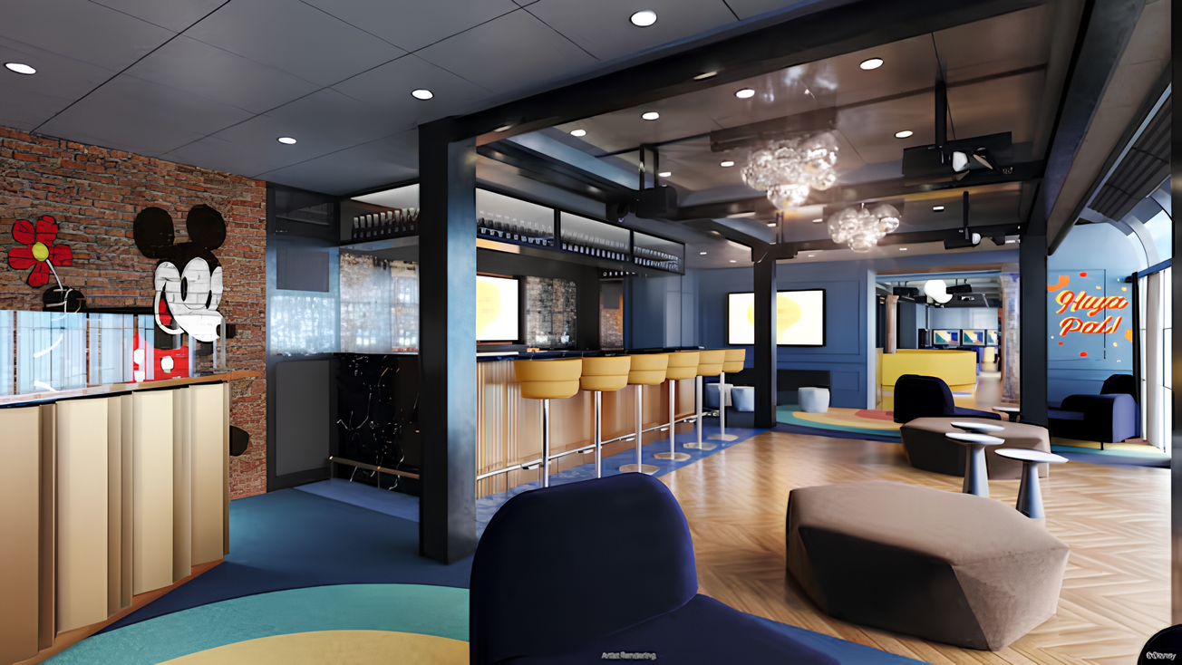 Sur les plus récents Disney Wish, Disney Treasure et Disney Destiny, le club se renouvelle avec un style moderne inspiré des lofts urbains de New York. Couleurs vives, murs graphiques, banquettes, espaces photo et une zone avec gazon synthétique créent un lieu dynamique et contemporain, parfaitement adapté à la personnalité des tweens. Un espace qui combine esthétique, confort et amusement, conçu pour encourager l’interaction et la créativité. Enfin, sur la Disney Adventure, Edge surprend une fois de plus: de l’extérieur, il apparaît comme un paisible café victorien donnant sur San Fransokyo Street, mais derrière cette façade se cache un refuge exclusif pour tweens, aménagé de manière ludique et originale. Un endroit unique où les jeunes peuvent se retrouver, s’exprimer et vivre leur croisière en véritables protagonistes.