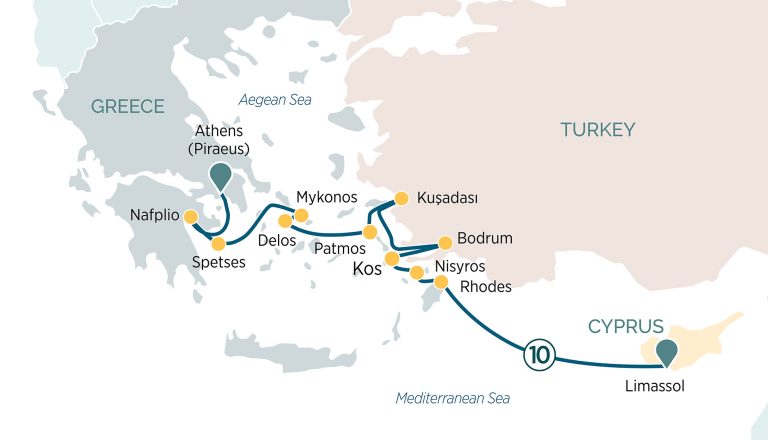 Questa crociera inaugurale di 11 giorni attraverserà alcune delle destinazioni più iconiche e storiche del Mar Egeo e del Mediterraneo, regalando ai suoi ospiti un’immersione totale in paesaggi mozzafiato, antiche rovine e atmosfere autentiche. A bordo, gli ospiti potranno vivere il meglio del lusso contemporaneo unito alla cultura millenaria di Cipro, Grecia e Turchia.